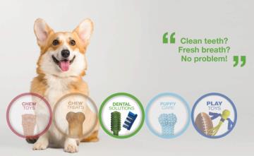 Brend Nylabone nudi raznolik izbor igračaka za žvakanje za sve vrste pasa. Posebno se izdvaja njihova linija za štence koja pruža zanimaciju i olakšava promenu zuba kod mladih pasa.